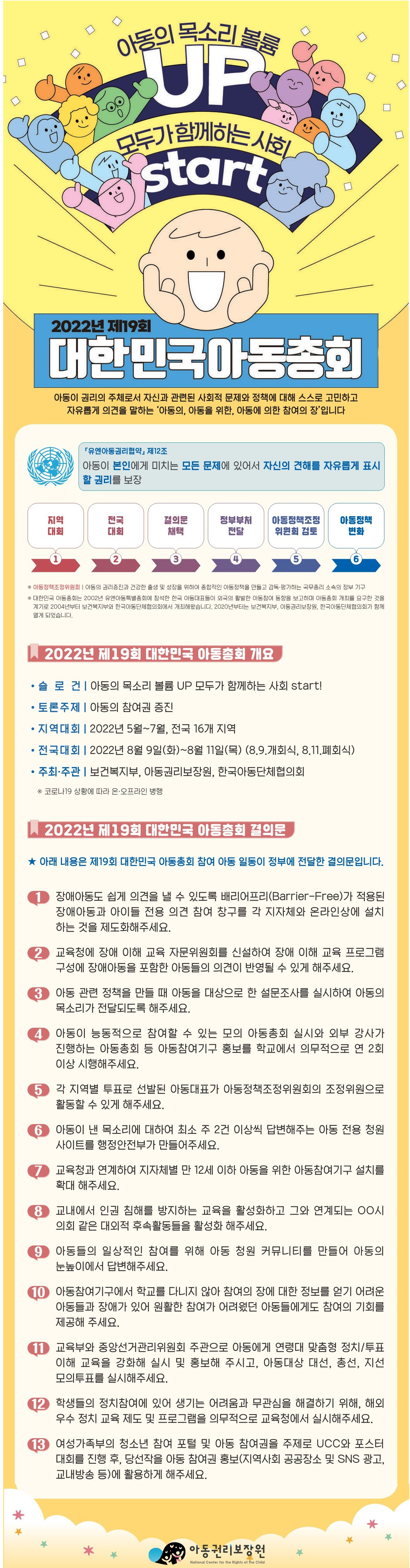 12.모든 학교를 대상으로 아동총회를 실시하여 아동권리교육을 실시하고 더 많은 아동들의 참여권을 보장해주세요.