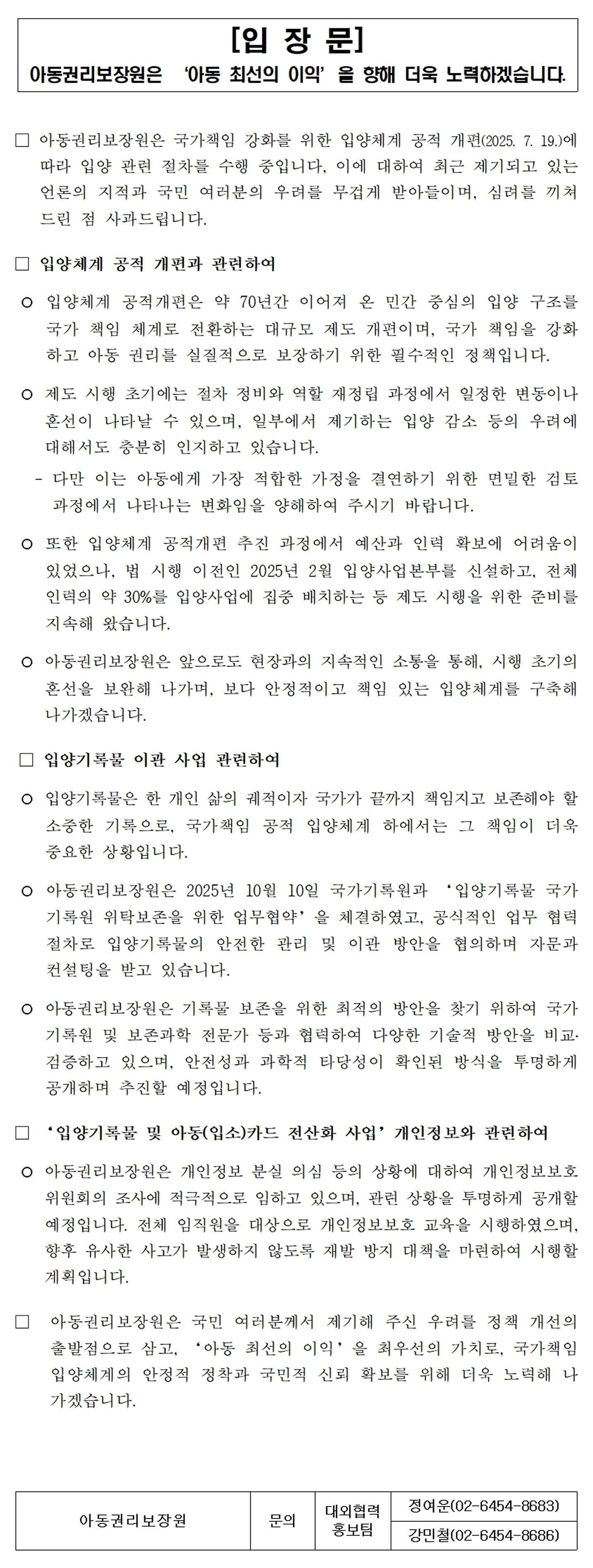 2026-03-30[입장문] 입양체계 공적개편 시행 초기 혼선 및 기록물 등에 관한 입장문