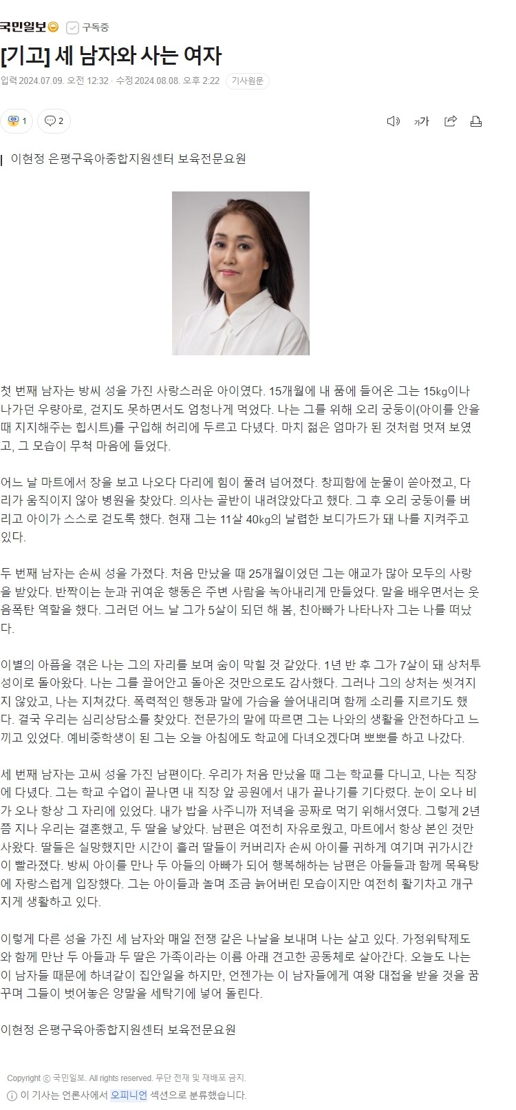 [기고] 세 남자와 사는 여자 / 위탁부모 이현정님