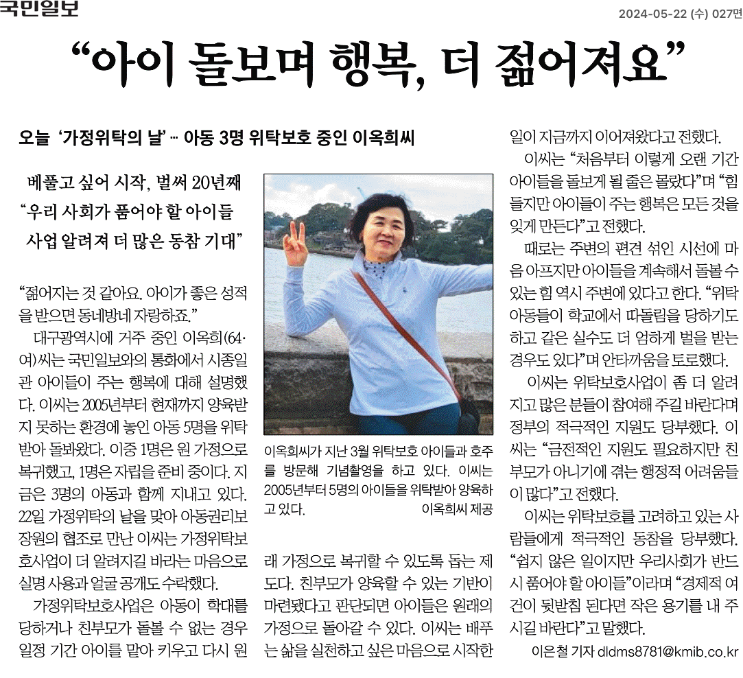 [미담사례] 아이 돌보며 행복, 더 젊어져요